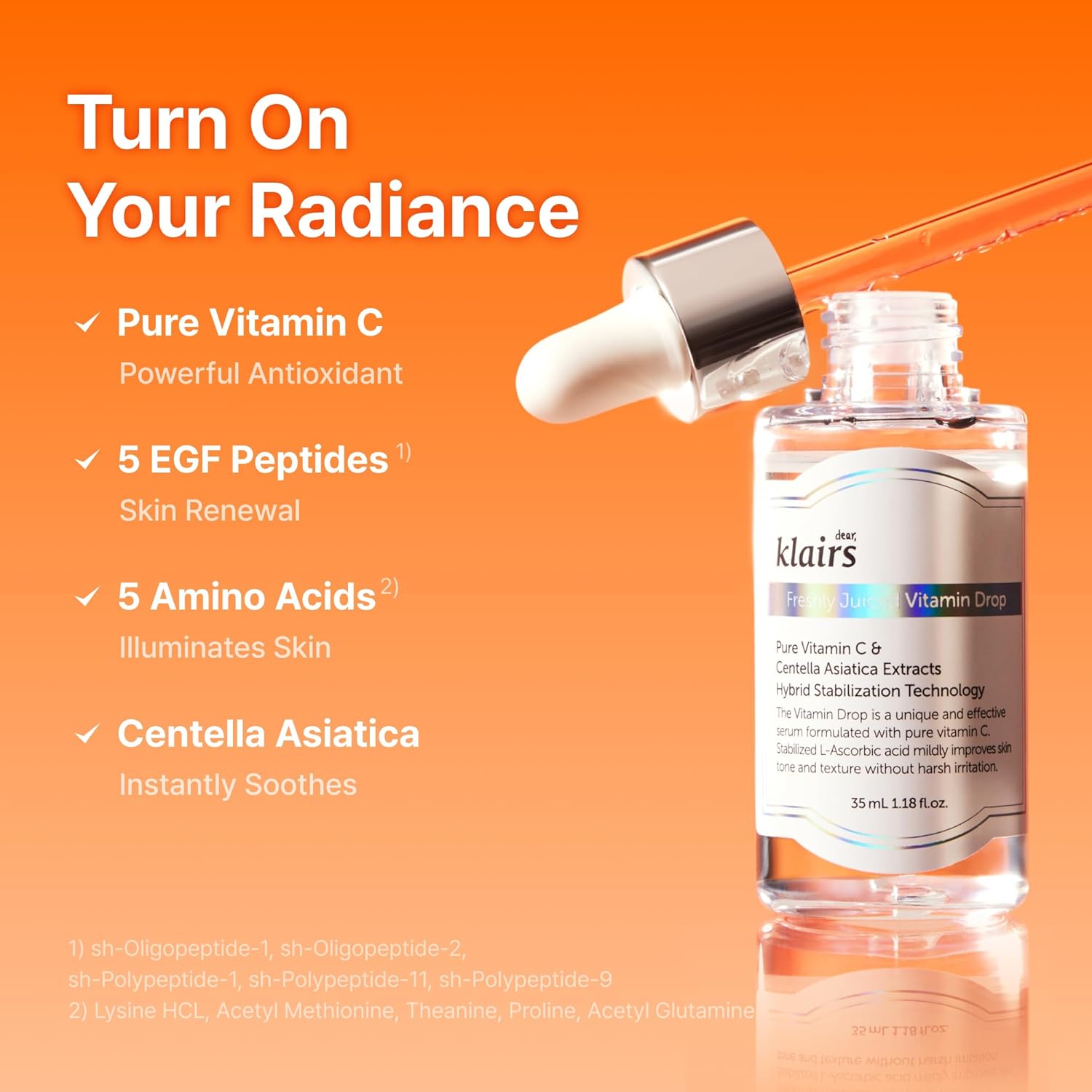 DearKlairs Freshly Juiced Vitamin Drop, 5% Hypoallergenic pure vitamin C serum, 1.18oz | Ascorbic acid, antioxidant for face, korean skincare